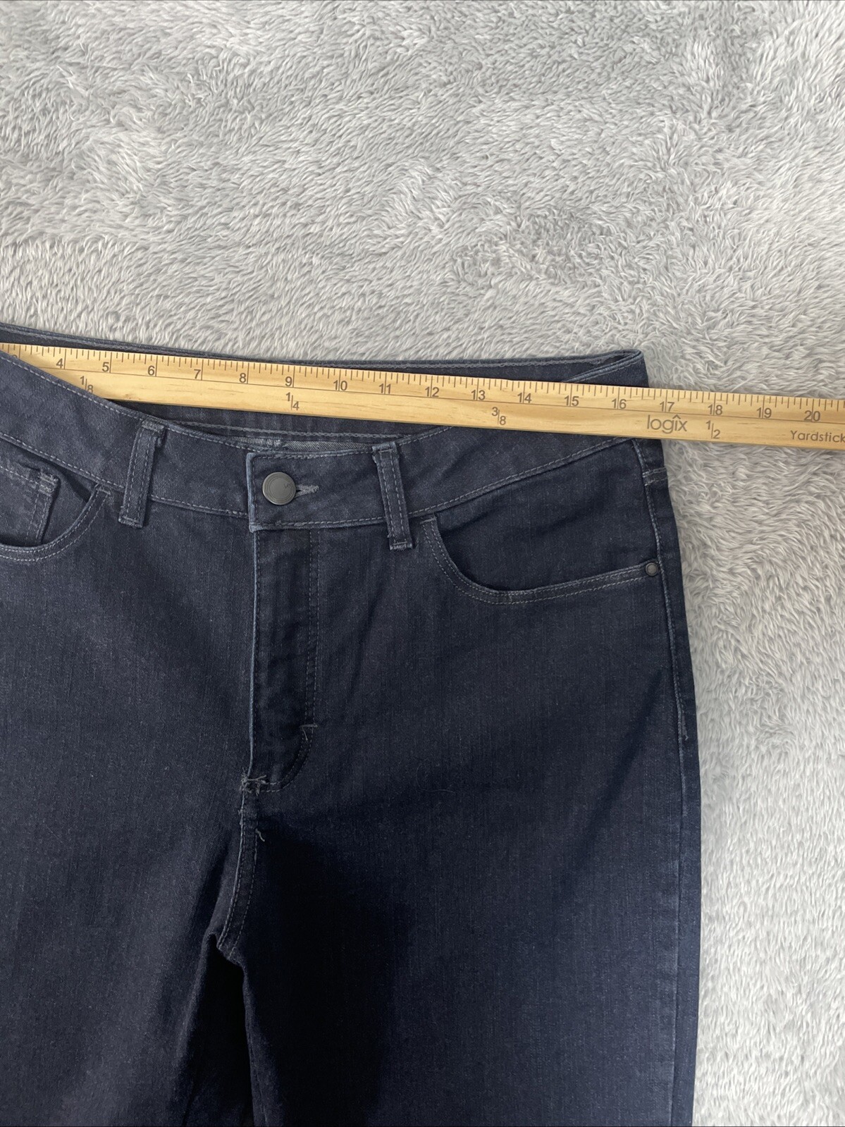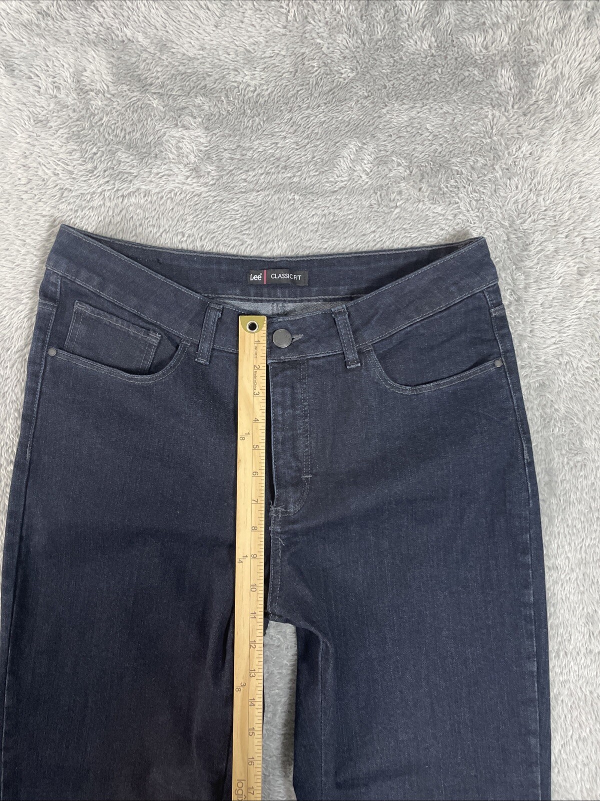 Lee Jeans Women's Petite 14P Dark Blue Classic Fit Straight Leg Stretch Denim There's a little nick by the zipper that may eventually need mending. The zipper flap covers it. CHECK THE MEASUREMENTS. Title only states tag size. Sizes can vary. Condition is used. Good used condition with typical wear. No losses to note. See photos for condition and detail. Please look carefully at all photos. The photos are an important part of the description. If you have questions, please ask. Returns are accepted within 30 days of purchase. The item must be returned in exactly the same condition as received. Items will be inspected, serial numbers checked, etc. Shipping fees are not refundable.