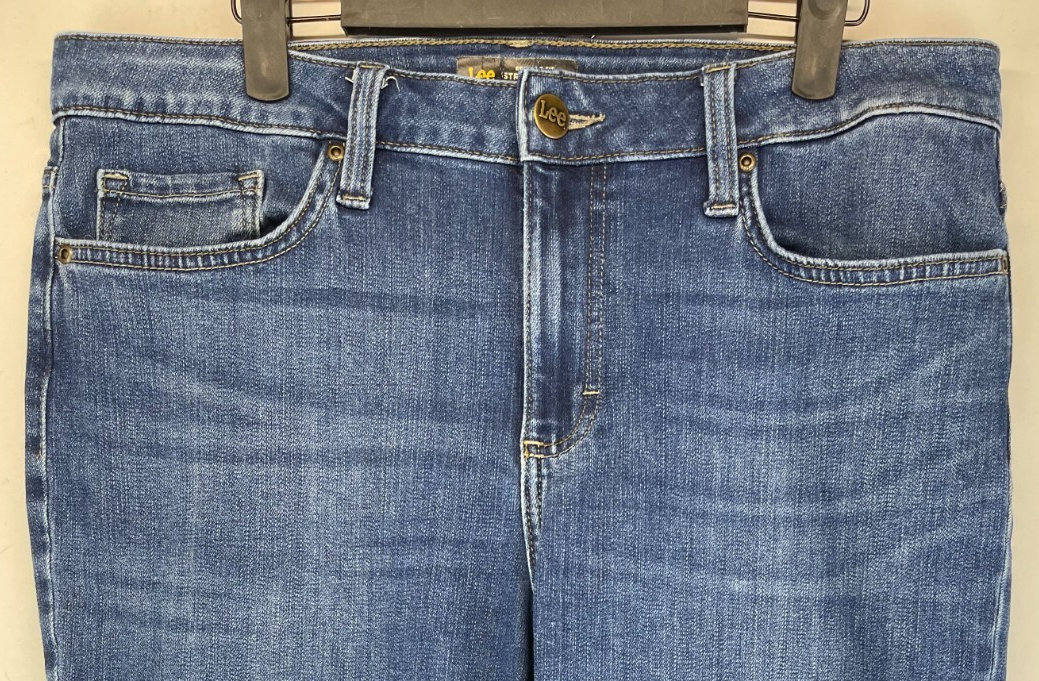 Lee Women's Relaxed Fit Straight Leg Mid Rise Medium Wash Blue Jeans Size 12