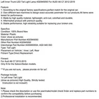 NEW-00004 Left Inner Trunk LED Tail Light Lamp For AUDI A6 C7 2012-15 DESCRIPTION Left Inner Trunk LED Tail Light Lamp 4GD945093 For AUDI A6 C7 2012-2015 Feature: 1: According to the original factory specifications,perfect match for the original car. 2: Own different test machines to design exact accurate parameter for our products.All items were tested for performance. 3: Made by high quality material, lightweight, anti-rust, colorfast and durable. 4: Aftermarket product with premium quality. 5: Stable performance, high reliability,suitable for replacing your broken one. Specifics: Condition: 100% Brand New Material: Plastic Color: show as pictures Manufacturer Part Number:4GD945093 Other Part Number:4GD945093 Interchange Part Number:4G5945093A, 4GD 945 093 Type: Tail Light Placement on Vehicle:Inner, Left, Rear Fitment Type:Direct Replacement ***Note:The Indicator Light is Amber Color. Suggest Replacing Entire Set Together. Fitment: For Audi A6 C7 2012-2015 Only fit for the Saloon/Sedan models. ***If you are not sure,please provide vin for us! Package Include: 1x Left Inner Tail Light (show as pictures) High Quality, Strictly tested. (Instruction is not inclued!) Note: 1.Please check the description or use the year/make/model check finder and replace part numbers to confirm the compatibility before purchasing. 2.Professional installation is recommended. About Us Shipping Terms Of Sale Contact Us Areyourshop has committed to do our utmost to serve more vehicles models with the most competitive products both in price and service, including headlights, foglights, taillights,headlight assembly, etc., aiming at the largest group of customers. Paired with our fast shipping and satisfaction guarantee, we’re able to ensure that all the customers can get the product when they need it. Customer Satisfactory 1.We back our commitment with superb service, 100% full money back and a customer satisfaction guarantee. 2.I am here and ready to assist you with any questions or concerns you might have before or after the purchase. 3.My goal is to make sure you are a happy customer and pleasant shopping with us. Feedback If you are satisfied with the purchase and our total service, your comment is very important in our business success. Please take a minute to leave us a positive feedback with an overall Detailed Selling Rating (DSR) of 5. Our eBay account setup auto feedback, so eBay system gives you automatically Positive feedback back after your positive feedback left. If you plan to give us a neutral/negative feedback Or open ebay/paypal case, please write to us immediately so that we can do our best to resolve your problem. United States Buyers Parcel will via USPS or UPS from us United States warehouse Shipping Time Usually ,Parcel will be delivered 2-7 working day include Handling time. Sometimes shiping time may has a little delay, such as Bad wether,Holidays We stand behind everything that we sell and will do everything possible to assure you are satisfied. When you receive your purchase if you are not 100% satisfied, please sent me ebay message and we will do our best to make you happy. If you still want to return your purchase, simply ship the item(s) back to us and we will refund your original purchase price and the original shipping charge. Buyers are responsible for the postal cost of returning the items. We must be notified of the intent to return your item within 30 days of receiving the item. Items returned must be in the same condition that they were received. How to return 1,Please ask us for return address . 2,Shipping back the package . The RMA#(Return Merchant Authorization Number = Your ebay ID) must be clearly written on the return package ,Otherwise the package will be refused. 3,Sent us the return tracking number. 4,All returns will be inspected prior to a credit being issued. If you have any questions, welcome to send us ebay message. We strive to answer all questions and resolve any problems as quickly as possible. Business Hours: HongKong Time GMT+8:00 Monday-Saturday 9:00-17:00 About Us About Item All items sold by us are being described to the best of our abilities, as accurate as possible, and with utmost conscientiousness on our part. However, to avoid any potential oversights, I respectfully request your assistance in helping us to make this a mutually satisfactory transaction by THOROUGHLY reviewing item description and photos, and asking all questions PRIOR TO BIDDING. Customer Satisfactory 1.We back our commitment with superb service, 100% full money back and a customer satisfaction guarantee. 2.I am here and ready to assist you with any questions or concerns you might have before or after the purchase. 3.My goal is to make sure you are a happy customer and pleasant shopping with us. Feedback If you are satisfied with the purchase and our total service, your comment is very important in our business success. Please take a minute to leave us a positive feedback with an overall Detailed Selling Rating (DSR) of 5. Our eBay account setup auto feedback, so eBay system gives you automatically Positive feedback back after your positive feedback left. If you plan to give us a neutral/negative feedback Or open ebay/paypal case, please write to us immediately so that we can do our best to resolve your problem. Shipping United States Buyers Parcel will via USPS or UPS from us United States warehouse Shipping Time Usually ,Parcel will be delivered 2-7 working day include Handling time. Sometimes shiping time may has a little delay, such as Bad wether,Holidays Terms Of Sale We stand behind everything that we sell and will do everything possible to assure you are satisfied. When you receive your purchase if you are not 100% satisfied, please sent me ebay message and we will do our best to make you happy. If you still want to return your purchase, simply ship the item(s) back to us and we will refund your original purchase price and the original shipping charge. Buyers are responsib