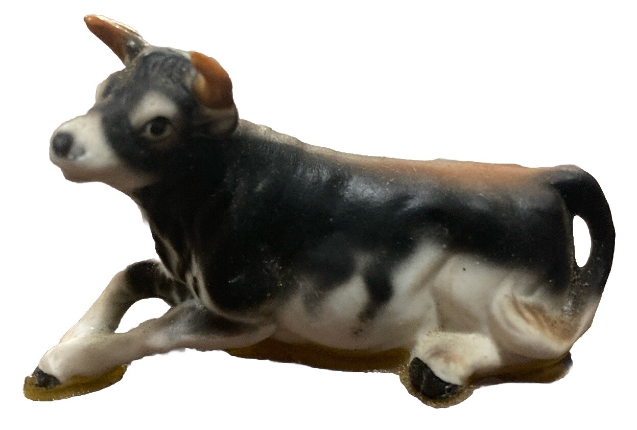 Add a touch of rural charm to your home decor with the Lefton Bone China Cow Family Set. Comprising of three meticulously crafted figurines, this set features the bull, heifer, and calf, each piece showcasing the exquisite attention to detail that Lefton is known for. Made in Japan, these figurines are a testament to the brand's commitment to quality and craftsmanship. Bull measures 2.5” long and 1.5” tall. Cow measures 2.25” long and 1.25” tall. Calf measures 1.5” long and 1” tall. Set have been glued down at some point in their life so still have some glue residue on their feet. Display them on a mantle or shelf, and let these delightful cow figurines bring a quaint and pastoral vibe to any room. The set comes as a complete trio, making it an instant collection or a thoughtful gift for someone who appreciates the nostalgia and beauty of countryside life.