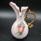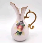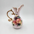 Vintage Lefton Pitcher Ewer Porcelain Hand Painted Figurine Peaches Gold Gilded. Condition is Used. Shipped with USPS Ground Advantage.