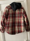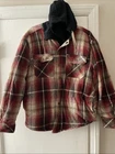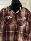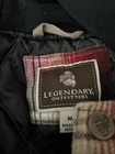 This Legendary Outfitters Flannel Shirt is designed for men in size M with a classic red plaid pattern and long sleeves. It features a snap closure, crew neck, and logo detail, making it a casual button-up jacket shirt perfect for outdoor activities. The shirt is made of cotton and cotton blend fabric with a flannel texture, offering a comfortable fit with lined pockets for added convenience. This versatile shirt is easy to care for and adds a touch of rugged style to any wardrobe.
