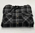 Legendary Outfitters Men's Cotton Flannel Hooded Shirt Jacket Size: Large Color: Black Content: Shell: 100% Cotton Hood: 60% Cotton / 40% Polyester Lining / Filling: 100% Polyester