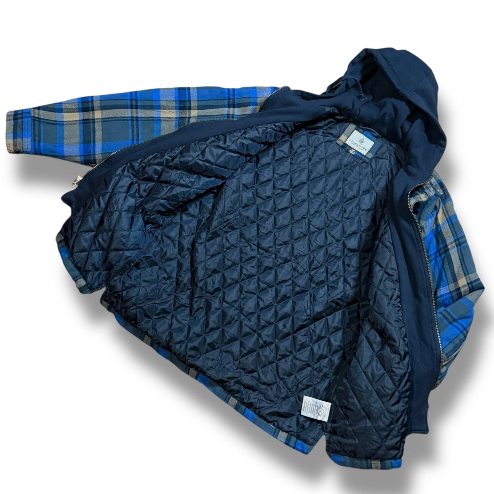 Legendary Whitetails Flannel Quilted Jacket Full Zip Button Blue Tan Plaid Sz L The jacket is in good used condition and ready to wear. Size - L B7