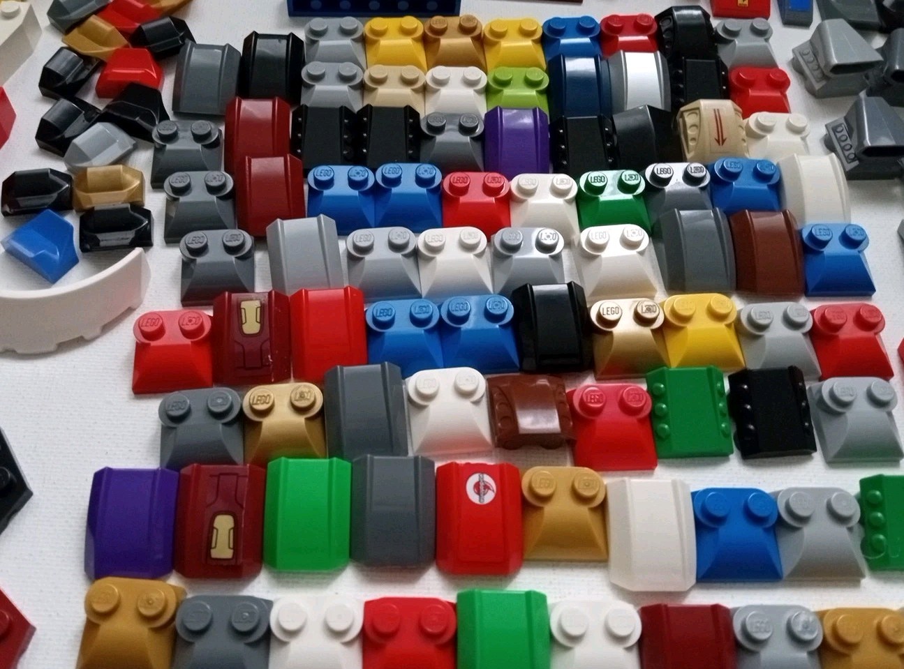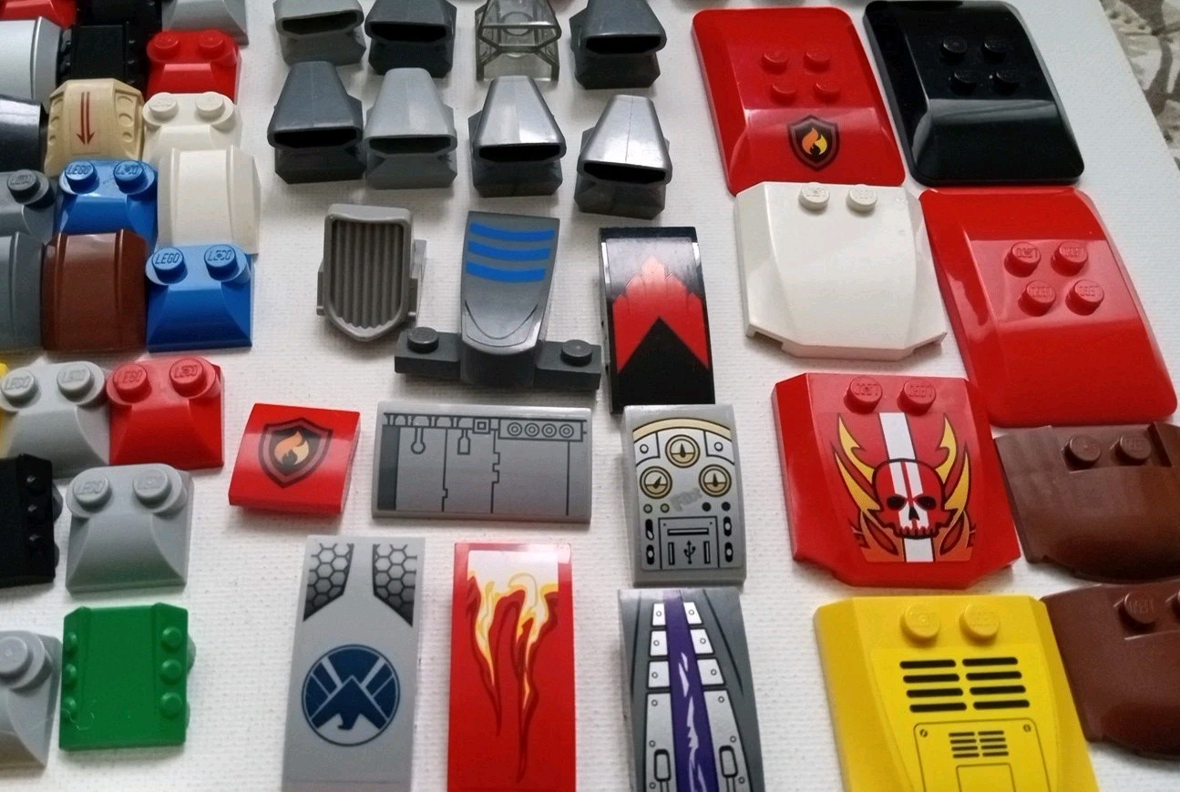 Lot includes genuine Lego multi-color specialty pieces for endless building applications. The set contains all pieces as shown in the actual photos. Ideal for Lego enthusiasts and building toy lovers. Pieces are a mix of older and newer and show color variations. Some pieces may show areas of minor surface wear.