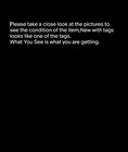 Please take a close look at the pictures to see the condition of the item,New with tags looks like one of the tags. What You See is what you are getting.