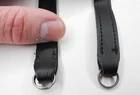 Leica 13/16" Leather Camera Neck Strap w/ Metal Rings For X1 / X2 (Fits Others) Description: Condition: BGN This neck strap is in BGN condition with signs of wear. This strap is warped and has a waviness to it. This is purely cosmetic and functionally it is in good working condition. This strap is 13/16" wide at the widest point. This strap was originally designed for the Leica X1 and X2 and possibly other cameras. The metal rings will attach to most Leica cameras however. I have attached a photo of a Leica X1 with the metal strap anchors circled. Any Leica camera with similar metal anchors can use this strap. Condition: LN "Like New" 99% -100% of NEW. EX+ "Excellent Plus" Exceptionally nice. Will show minimal signs of wear. EX "Excellent" Shows moderate wear. Possibly light discoloration but no tears or fraying. EX- "Excellent Minus" Shows signs of wear. Possible discoloration and small signs of fraying but no holes or tears. BGN "Bargain" Shows more than average wear. May have stains, discoloration or fraying but no holes or tears . UG "Ugly" Very rough looking. May have tears, stains, fraying or discoloration.