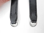 Leica 3/4" Leather Camera Neck Strap w/ Metal Rings For X1 / X2 (Fits Others) Description: Condition: BGN This neck strap is in BGN condition with some signs of wear. Functionally it is in good working condition. This strap is 3/4" wide at the widest point. This strap was originally designed for the Leica X1 and X2 and possibly other cameras. The metal rings will attach to most Leica cameras however. I have attached a photo of a Leica X1 with the metal strap anchors circled. Any Leica camera with similar metal anchors can use this strap. Condition: LN "Like New" 99% -100% of NEW. EX+ "Excellent Plus" Exceptionally nice. Will show minimal signs of wear. EX "Excellent" Shows moderate wear. Possibly light discoloration but no tears or fraying. EX- "Excellent Minus" Shows signs of wear. Possible discoloration and small signs of fraying but no holes or tears. BGN "Bargain" Shows more than average wear. May have stains, discoloration or fraying but no holes or tears . UG "Ugly" Very rough looking. May have tears, stains, fraying or discoloration.