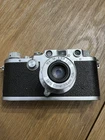 The product is a vintage Leica IIIc film camera with an Elmar 2.8/50mm lens. It comes with a case, cap, and additional records. This camera is a collectible item and is part of the brand's lenses and accessories range. Comes with case, cap, and what I believe is original service records since the original owner purchased as atleast one of the businesses is no longer at the location addressed. Message with any questions fast shipping!