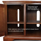 Leick Home 80385 Leaded Glass Three Door Corner TV Stand with Enclosed Storage For 50" TV's, Burnished Oak ✓ Free 60 Day Returns ✓ Free Express Shipping Description: The Leick Leaded Glass 50" Corner TV Stand provides a fashionable home for TV's up to 50" with its rich, hand applied multi-step burnished oak finish and raised panel furniture details. Storage opportunities abound with adjustable shelves behind tempered glass for electronic components, plus enclosed storage doors with an adjustable shelf on each side to help tidy up and store DVD's, CD's and gaming devices. Simple unfolding assembly takes minutes. You expand the hinged cabinets, install the bottom panels, insert the back panels, and fasten the cabinet top. Then you just install the shelves and attach the door pulls, and you're done! Features: Hold's TV's up to 50" and has a 240 lb. weight-bearing capacity Constructed of hardwood solids and oak veneers in a hand applied Burnished Oak finish One adjustable, and one fixed component shelf behind tempered glass doors with a touch bullet catch Two media storage cabinets on each end with two shelves (one adjustable and one fixed) Component opening size: 17.5" W x 17.5" D x 20" H Simple unfolding assembly takes minutes. You expand the hinged cabinets, install the bottom panels, insert the back panels, and fasten the cabinet top. Then you just install the shelves and attach the door pulls, and you're done! Dimensions: 46.75" W x 20" D x 25" H Product Details: Brand: Leick Home Color: Burnished Oak Recommended Uses For Product: Entertainment Center Product Dimensions: 20"D x 46.75"W x 25"H Special Feature: 3-door Brand: Leick Home Color: Burnished Oak Recommended Uses For Product: Entertainment Center Product Dimensions: 20"D x 46.75"W x 25"H Special Feature: 3-door Mounting Type: Floor Mount Room Type: Living Room Door Style: Raised Panel Weight Limit: 240 Pounds Included Components: TV Stand Finish Type: Oak Size: 50 inches Number of Shelves: 3 Number of Pieces: 1 Item Weight: 93 Pounds Base Type: Legs Installation Type: Freestanding Top Material Type: Oak Handle Material: Wood or Metal Back Material Type: Wood Assembly Required: Yes Number of Levels: 1 Global Trade Identification Number: 76 UPC: 013964577976 Manufacturer: Leick Furniture Item Weight: 93 pounds Country of Origin: China Item model number: 80385 Is Discontinued By Manufacturer: No Finish types: Oak Care instructions: Wipe with Dry Cloth Warranty Description: One year limited warranty. Batteries required: No