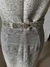 Elegantly crafted in sumptuous silk, this Lela Rose cocktail dress is a stunning choice for formal occasions, cocktail parties, or weddings. The dress features a flattering V-neck and a sleeveless design that makes it perfect for the warm vibes of spring and summer. Its knee-length fitted shift style offers a timeless silhouette that gracefully complements the feminine accents and metallic highlights inherent in the garment. Comes with diamanté belt. The piece comes in a sophisticated ivory hue, easily paired with a variety of accessories to suit your personal style. With a standard size 12 fit (US size 8) the dress is designed to closure with a seamless zip, ensuring a smooth and comfortable wear. Whether you're attending an elegant event or celebrating a special moment, this dress is sure to make a memorable statement.