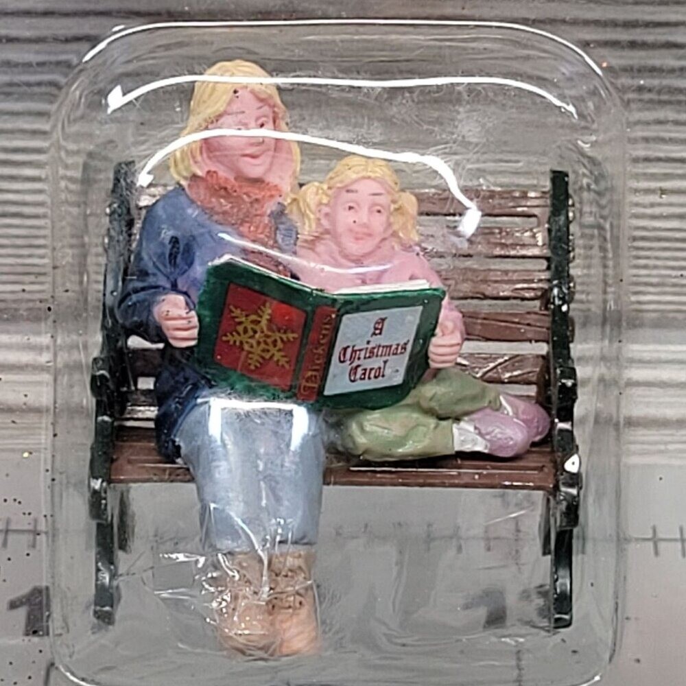 • Hand-painted mother and daughter figurine • Seated on a bench • Includes book titled "A Christmas Carol" • Part of Lemax collection • Made from durable material
