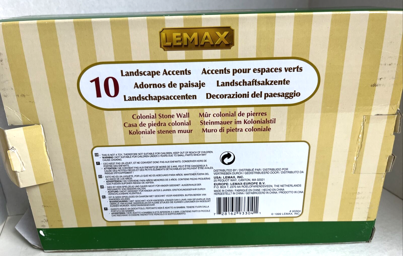 Number in Pack:10Style:ColonialTheme:SeasonalSubject:LandscapeYear Manufactured:1999Character Family:Colonial Stone WallTime Period Manufactured:1990-1999Era:Late 20th Century (1970-1999)gtin13:728162933041Occasion:ChristmasMaterial:ResinBrand:LemaxUPC:728162933041Features:Boxed, Multi-PartDepartment:AdultsSuitable For:Christmas VillagePackaging:BoxSeller Notes:“Great condition, comes with box”Collection:LEMAXRoom:Any RoomType:Christmas Village