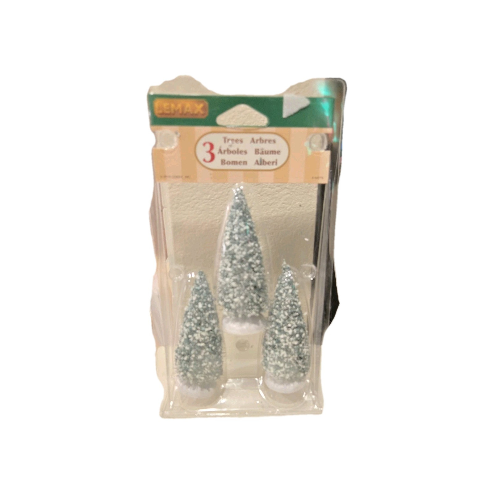 New Lemax Holiday Village Christmas 3 Piece Snowy Pine Trees Condition: New 4" Tall X 1 1/2" Wide The product is a set of 3 new Lemax Frosted Pine Trees from the Ornaments collection, designed for Christmas occasions. The trees are round in shape, green in color, made of plastic, and feature a snow pattern. They are part of a holiday village display, suitable for adults, and come boxed in a carton. Manufactured in 2020, the trees are perfect for indoor use and have a seasonal theme. (Bin A22) SKU00300PH