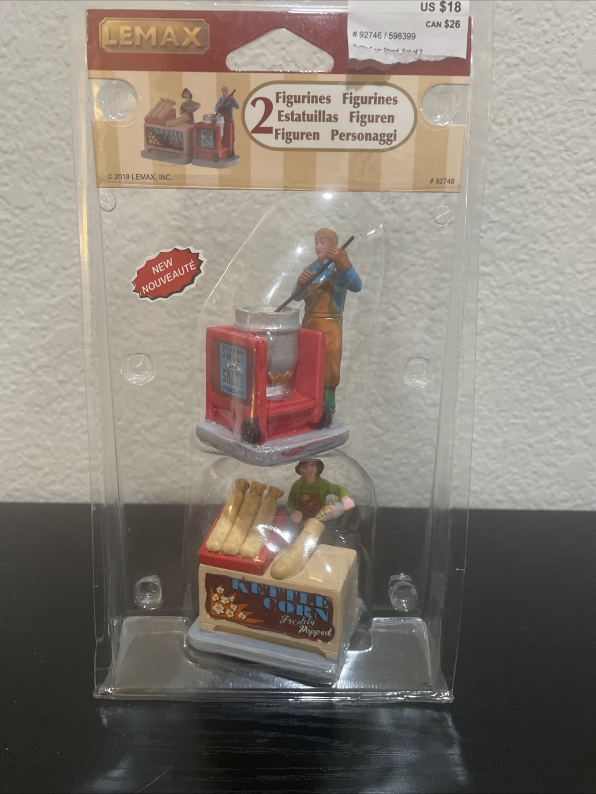 The Lemax KETTLE CORN STAND is a 2-piece Holiday Village Carnival Train Accent Set perfect for adding a festive touch to your holiday décor. Made of resin and featuring a colorful multicolor design, this set includes a train subject with a unique carnival theme. The item is part of the Lemax brand's Carnival Figurines series and is a part of the Snow Village collection, making it a charming addition to any room in your home. With excellent packaging and never removed from its original package, this set is a collectible item that captures the spirit of a carnival, fair, or amusement park atmosphere.