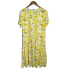 New Without Tags Sunshine on a hanger! This adorable dress bursts with a playful lemon print, instantly brightening your day. The relaxed, drop waist silhouette offers effortless comfort and a flattering fit. Imagine the soft fabric gently swaying as you stroll through a farmer's market, the vibrant yellow hues mirroring the fresh produce around you. The short sleeves keep you cool, while the cheerful design sparks joy wherever you go. Perfect for a casual brunch with friends, a sunny picnic in the park, or a relaxed vacation getaway. Pullover style Round neckline Short sleeves Drop waist Midi length depending on height - see measurements Made in Ukraine 60% cotton, 40% viscose Machine washable Style profile - casual, fruit print, bright, novelty, lightweight, spring, summer Approximate flat lay measurements: Shoulder to bottom hem length - 43.5" Pit to pit width - 21" Please compare measurements to something you already own to verify size and fit We are happy to answer any questions! We ship the next business day!