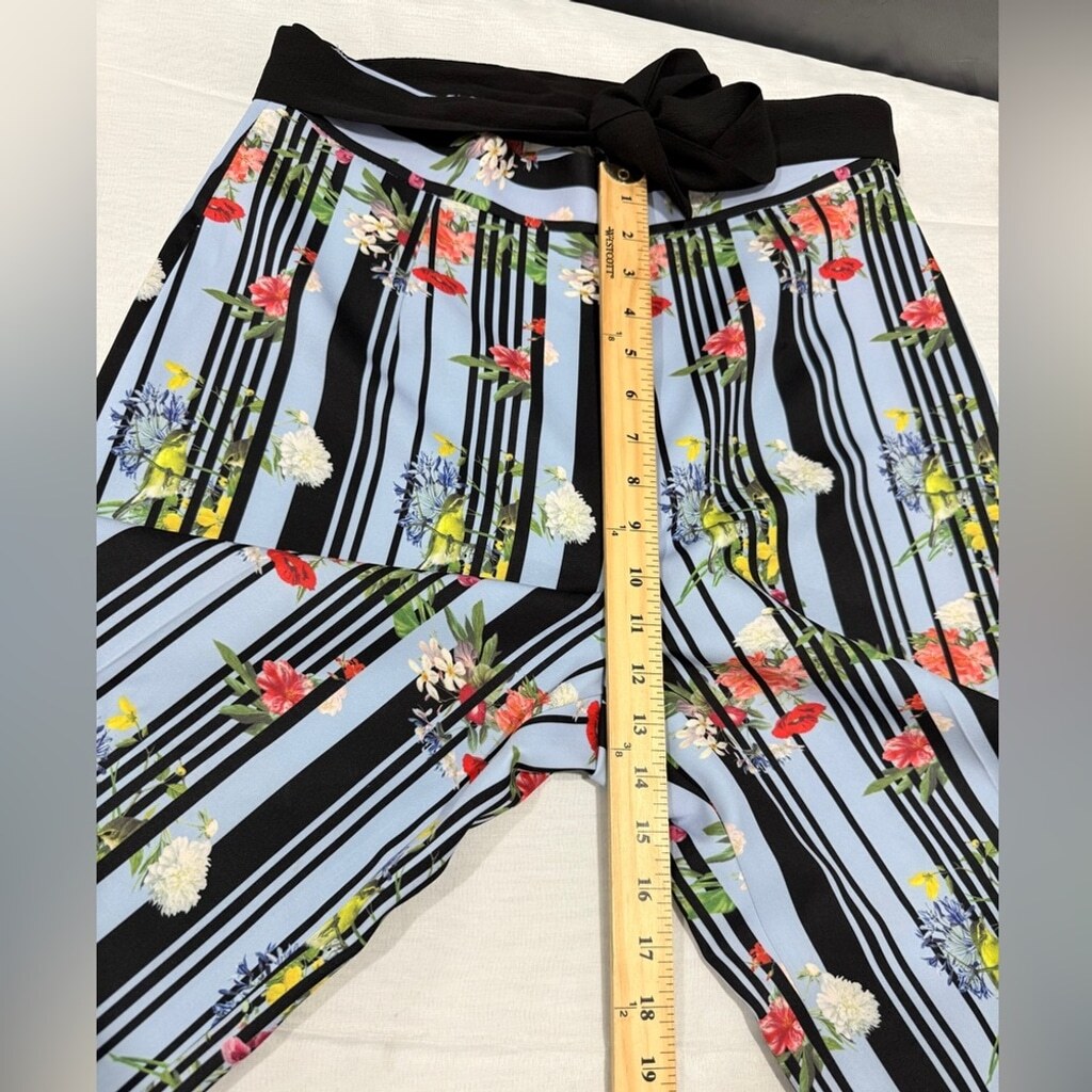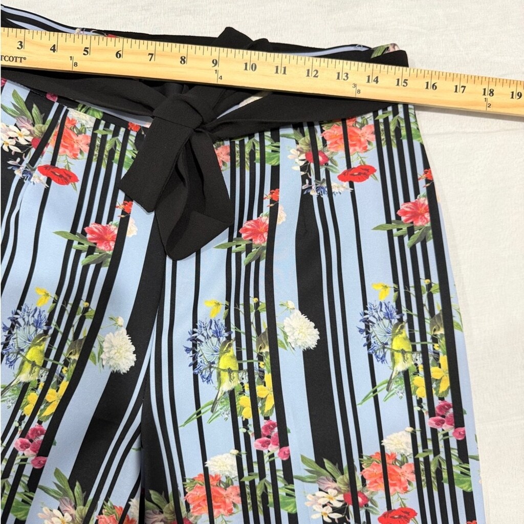 Lena Gabrielle Women's Blue Floral Wide-Leg Belted Palazzo Pants Size 10 New Without Tags. Polyester/Spandex Side Zipper Belt Loops Light blue with multicolor floral print