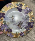 Plate no. 3685A in the limited edition of Ruby Splendor by Lena Liu, this exquisite Crown Jewels Hummingbirds Lilac Floral Plate is a testament to the artistry of the late 20th century. Part of the esteemed Bradford Exchange collection, "Lena Liu’s Delicate Treasures," this collector's item features a vibrant multicolored floral pattern with delicate hummingbird details, embodying the elegance of American art pottery tradition. The porcelain plate measures 8 1/8 inches in diameter, perfectly round, and is suitable for display on any occasion. Rooted in a rich culture of craftsmanship, this piece combines the timeless appeal of decorative style with the skilled pottery techniques of the 1990 era. It is a true vintage gem for both enthusiasts and discerning collectors alike.