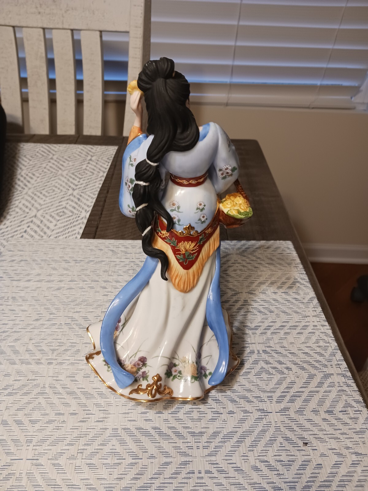 This stunning porcelain figurine by Lena Liu is pure elegance! The Chrysanthemum Princess dazzles with intricate details, from her delicate flower-adorned dress to the golden crown accents. The craftsmanship is impeccable—Danbury Mint’s quality shines in every curve. A must-have for collectors, it adds a graceful touch to any display. Absolutely breathtaking!