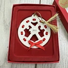 This Lenox 2012 Annual Porcelain Christmas Candy Canes Ornament is a small snowman-shaped ornament made of porcelain. Featuring a solid multicolor design with a Christmas Wrappings Candy Canes style, it is part of the Ornaments collection. The ornament is suitable for Christmas occasions and recipients of all types. It includes a hanging feature and is ideal for holiday decorating or collecting.