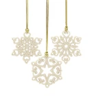 Add a little charm with these mini porcelain snowflakes. This 3-piece set features intricate pierced detailing for a delightful look. It's a great addition to any gift tag or you can use it as an extra place setting marker for your holiday dinners! WHY IT'S SPECIAL: Lenox's mini snowflake ornament set adds a little charm to Christmas with its intricate pierced detailing and delightful snowy finish. They're a great addition to any gift bag, decorative display, or tree! WHO IT'S PERFECT FOR: These snowflake ornaments make a great gift for Christmas lovers who enjoy the snow! Whether they can't get enough of it or don't see any of it, give them a tiny reminder of a the north with these mini snowflake ornaments. WHAT'S IN THE BOX: Includes (3) snowflake ornaments which measure approximately 2" x 2". WHAT IT'S MADE OUT OF: Lenox's snowflake ornament set is crafted of ivory porcelain with a beautiful glossy finish and gold cords for hanging. HOW TO CARE FOR IT: This Lenox Christmas ornament set is meant for display on the tree during the holiday season, but you can keep it out all winter to maintain an atmosphere of cheer!