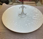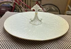 Add a touch of elegance to your dining table with this Lenox Chateau Collection Server. The ivory color and sculpted handle of this serving tray make it a stunning addition to any Mid-Century Modern decor. The tray is made of high-quality ceramic and features handles for easy carrying. This original piece from the brand Lenox is perfect for serving sandwiches or other small dishes. The pattern is sandwich and the style is vintage, making it a unique and charming addition to your collection. Whether you're hosting a formal dinner party or a casual gathering, this tray is sure to impress your guests.