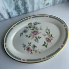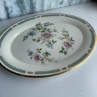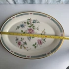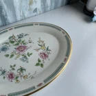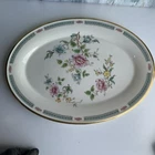 This Lenox China Morning Blossom 16" Oval Serving Platter features a floral theme on bone china. Made in the United States, the platter has a glossy finish and showcases a multicolor design perfect for serving meals or as decorative serveware.