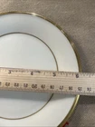 Enhance your dining experience with this exquisite set of four Lenox Eternal bread plates from the Dimension Collection. Each plate measures 6 1/4 inches in diameter and features a classic ivory color with a stunning gold trim. Made from high-quality bone china, these plates are perfect for all occasions, whether a casual breakfast or a formal dinner party. With a vintage look and feel, these plates have a glossy finish and are produced using traditional pottery techniques. The backstamp is printed and the production style is art pottery. The set includes bread plates and is an original product from the United States. Add a touch of elegance to your table setting with this timeless collection from Lenox.