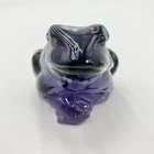 This exquisite figurine of a frog is a stunning addition to any collection. Hand-painted with intricate floral patterns, this LENOX FENTON LILA figurine is made of glossy fused glass and boasts a beautiful purple color. Measuring at 4 inches in length and 2.5 inches in height, this original piece is a perfect representation of the nature-inspired theme of frogs and flowers. The figurine is signed and comes with a backstamp impressed from the production style of art glass. Produced in 2005 in the United States, this decorative piece is a part of the Lila The Little Purple Frog product line. It is a perfect item for those who love animals, nature, and beautiful art glass. CONDITION: Pre-owned in good condition. No chips, cracks, damage. Comes with original sticker. ****SHIPS NEXT BUSINESS DAY***