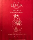 This Lenox For The Holidays Snowman Trivet is a charming addition to any holiday collection. Crafted in 1998, it features a festive snowman design and measures 9-1/2” x 5-1/2” x 5/8”. Perfect for holiday entertaining, it can be used to protect your surfaces from hot dishes or as a decorative display piece. The trivet is made by renowned brand Lenox and is a collectors' item. Its intricate details and beautiful design make it a great gift for anyone who loves the holiday season. Add this Snowman Trivet to your collection and bring a touch of holiday cheer to your home!