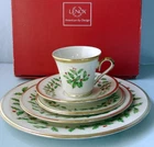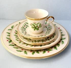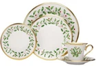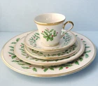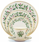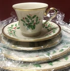 Lenox Holiday (Gold) New 5-Piece Place Setting American by Design, Made in USA Elegant Holiday creamy ivory fine bone china dinnerware set decorated with the festive holly and berry motif and banded in lavish 24-karat gold. Brand new in original red Lenox box. Package may show sign of shelf/storage wear (such as dent, torn corner, small puncture, crease or tape). Box holds contents very well and intact. item was never used or displayed. • Crafted in USA of Lenox ivory fine bone china • Durable, dishwasher-safe • Set consists of (approx. size) : 10-3/4" dinner plate, 8" salad plate, 6-1/4" bread and butter plate, 6" saucer and 3" high-6 oz. footed teacup • The perfect setting for your holiday dining endeavors Additional sets available in stock-ready to ship! ----------- Please closely examine the listing and submit any questions prior to purchase. Smoke-free, pet-free environment. Pictures may not reflect true colors due to various lighting conditions.