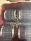 Lenox set of four plaid napkin rings. These napkin rings are perfect for use during meals with family and friends, and are sure to impress your guests. The set is a must-have for those who appreciate fine dining and want to add a touch of sophistication to their table setting. Pre-owned