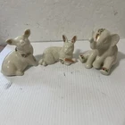 This Lenox Jewel Collection figurine features a cute pig, rabbit, and baby elephant, all beautifully crafted with a white and gold color scheme. Made in the United States in 1992 and 1996, these figurines are perfect for collectors or as a special gift for any occasion. The intricate details and jeweled finish make this piece a true treasure for any lover of china and decorative collectibles. Whether displayed on a shelf or as a centerpiece, this figurine is sure to bring joy and charm to any space.