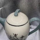 This rare and vintage Lenox Kingsley Jewel Collection coffee pot with lid is a true gem from 1945. The colorful floral pattern is beautifully displayed on the ceramic material and is perfect for all occasions. The coffee pot is from America and was studio crafted in the United States. The production style is art pottery and the production technique is handcrafted. This coffee pot is a part of the Kinsley product line and is a great addition to any collection.