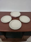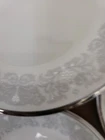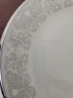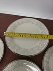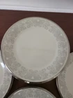 Lenox Snow Lily Salad Plates feature a round shape with a Cream color and Snow Lily pattern. Made of Porcelain with Platinum Trim, this set of 4 plates is from the 1972 Snow Lily collection. Each plate has a diameter of 8 inches and is decorated with a glossy finish. These decorative plates showcase a floral theme and are an original production from Lenox in the United States during the 1970s.