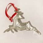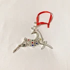 Lenox "Sparkle & Scroll" silver plated reindeer ornament with 7 inset multi-color gemstones and red ribbon hanger. Excellent used condition with no chips or cracks. Original ribbon hanger and all gems are in place. Ornament measures 3.5" tall at tallest point x 4.5" wide at widest point. All measurements approximate based on item laid flat, all reasonable offers welcome! Please note large and/or fragile items are shipped in boxes with packing paper / bubbles / etc. We will not ship fragile items in bubble mailers, please do not ask.