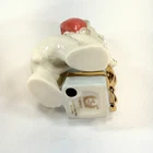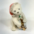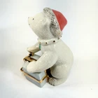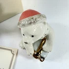 The Lenox "The Christmas Cub" Santa Polar Bear with Presents Figurine is a medium-sized figurine made of porcelain featuring a festive scene of a polar bear with Santa hat and presents. The figurine is part of the North Pole collection and has a traditional style, making it perfect for Christmas décor. With a glossy finish and multicolor design, this piece is a charming addition to any room during the holiday season. The figurine comes unboxed with a certificate of authenticity. new open box