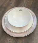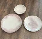 Lenox Trianna 3-piece Salaria Pink Bowl & Plate Set H1408 Details & Care Note: New without original box The Trianna 3-piece Place Setting boasts a rich pink hue and striking geometric pattern with luminous gold accents. This fashion-forward set is made from dishwasher-safe, durable ceramic porcelain and microwave-safe metallics. -Material: Porcelain -Dishwasher Safe -Microwave Safe Gold -Chip Resistant -Imported -One 11.125" Dinner Plate -One 9 “ salad plate -One 8.5" Pasta Bowl