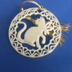 This Lenox Yuletide Series ornament features a cute cat design with a pierced cutout on both sides. The white porcelain material is accented with gold trim, giving it a festive and elegant look. Measuring at 2.25 inches in length and height, this medium-sized ornament is perfect for any Christmas tree or holiday display. The ornament is an original piece from the Yuletide Series collection and is ideal for collectors or anyone who loves unique and decorative holiday decorations. It comes with a set that includes one ornament and is suitable for over 18 years of age. Add some personality to your Christmas decor with this Lenox ornament!