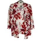 Leo Guy Women's 4 Beige Pink Red Floral Beaded 2-Piece Matching Tank with Open Cardigan. 3/4 Sleeve. Cardigan is longer in the front. Separate pieces. Great Condition. Cardigan has a couple of stains on front (see last picture) and a few loose beads. Smoke free home. 100% Viscose Size: 4 Measurements are approximate Tank Pit to Pit: 18" Tank Length: 26" Cardigan Pit to Pit: 22" Cardigan Length: 26"/29" front Sleeve Length: 19" #3153