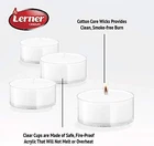 Lerner Clear Tea Lights Candles Bulk - 4.5 Hour Cup Pack of 100, White Product Details Brand: Lerner Candles Color: White Product Dimensions: 1.5"W x 0.75"H Item Weight: 3.99 Pounds Number of Items: 100 Scent: Unscented Are Batteries Included: No Indoor/Outdoor Usage: Indoor Specific Uses For Product: Relaxation Shape: Round Material: Wax Container Material: Plastic Occasion: Wedding Seasons: All Season Special Feature: Clean Burning,Eco-friendly,Long Burning,Unscented Style: 4.5 Hour Wick Quantity: 1 Model Name: L00173 Theme: Season Package Information: Mug Material Type Free: Palm Oil Free, Animal Fat Free, Lead Free Unit Count: 100.0 Count Embellishment: Bow Material Feature: Eco-friendly, Lead-Free Candle Type: Tea Light Candle Item Diameter: 1.5 Inches Size: Pack of 100 Target Audience: Women Manufacturer: Lerner Part Number: 14188707 Item Weight: 3.99 pounds Item model number: 14188707 Is Discontinued By Manufacturer: No Special Features: Clean Burning,Eco-friendly,Long Burning,Unscented Batteries Included?: No Batteries Required?: No Is Discontinued By Manufacturer : No Product Dimensions : 1.5 x 1.5 x 0.65 inches; 3.99 Pounds Item model number : 14188707 Manufacturer : Lerner Brand: Lerner Candles Color: White Product Dimensions: 1.5"W x 0.75"H Item Weight: 3.99 Pounds Number of Items: 100 Scent: Unscented Are Batteries Included: No Indoor/Outdoor Usage: Indoor Specific Uses For Product: Relaxation Shape: Round LEAD-FREE VOTIVE TEA LIGHTS CANDLES - Lerner tealight candles give a warm glow to the ambiance. Our eco-friendly 4.5 hours long burning will surprise your guests by their next come over. Be it home decoration or any event, a high quality traditional unscented tea lights candle will be of good use. It will flatter any occasion with its gracious light and bring upon a sense of peace and love. PREMIUM QUALITY UNSCENTED CANDLES WITH STANDARD PLASTIC TEA CUPS HOLDER - Our white fragrance-free candles has plastic holders which will not be a mess to clean up and will not burn your furniture. It has a pure cotton wick and paraffin wax which will brighten any place like a dim light under a sky. Our long-lasting votive candles give a precise burn and prevent it from dripping or melting away fast. MULTIPURPOSE CANDLES BULK ECO-FRIENDLY TEALIGHT CANDLES - Lerner precise burn white tea lights candles versatile nature can complement your home and any special occasions. This unscented small teacup tealight candles are environment free and are great for personal and professional use in home décor, wedding receptions, Christmas holidays, Valentine’s day, anniversaries, pool parties, garden fun, summer nights, crafts and more. LERNER TEACUP TEALIGHT CANDLES BULK PACK - Our bright cup tealight candles comes in a neatly packaged box. The value pack of clear cup tealight candles burn nice and give smooth flame. Save more on bulk candles pack of unscented long burning white tea light candles, wrapped tightly in protective boxes. Lerner Unscented Tea Light Candles for Long Lasting Burning Hours - Tea light Teacup Candles for Warmers - Party Light Candles for Decoration, Centerpieces and Special OccasionsPlace Lerner 4.5 hour long burning tealights clear cup on any candlestick, table, mantle, and desk without crowding the space for a delightful glow. Votive tea light candles give eye-catching addition to any arrangement. They are lightweight and can easily enhance the beauty of a centerpiece in a home, wedding ceremony, event, or any special occasion. Our teacup plastic holder white tealight candles are highly versatile, use as votive prayer candles in the church, as decorations for parties, weddings or bridal showers, as ambient accents in the garden, living room and bedroom decor, for photo shoots, or as dinner date night item to help set the mood. Our tealights burn a nice and smooth flame for a peaceful glow without being too harsh. Our tealights have 100% cotton wick and paraffin wax for a clean, smokeless burn.Lerner Tealight candles features:✔ Diameter of 1.5-inches and height of 0.65-inch✔ Standard plastic tealight holders✔ Nice and smooth flame✔ 100% pure cotton wick and wax✔ Unscented and eco-friendlyEach candle comes in its own elegant clear recycled plastic holder. Our mini-sized votive candle pack comes tightly wrapped inside a box to ensure they reach you undamaged. Order our unscented tealight candles bulk pack of 50 clear glass-filled teacup candles today and brighten up any room in your home!