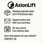 AXIONLIFT VEHICLE COMPATIBILITY: Volkswagen Amarok (2HA / 2HB / S1B), 2010–2021 KIT INCLUDES: 2 pcs Front Strut Spacers - Left & Right 2 pcs Rear Lift Blocks - Left & Right 4 pcs Rear U Bolt Fixing Elements MATERIAL: Aircraft-grade aluminum Steel Shipping & Returns Shipping usually takes up to 10 business days from Ukraine to US/EU. 30-day return policy from the delivery date. Hassle-free returns guaranteed. Support before and after purchase — we’re always here to help! Can’t find spacers for your vehicle? Contact us and we’ll help you pick the right ones.