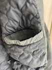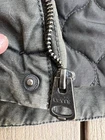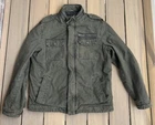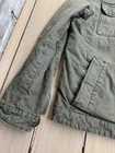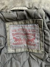 Crafted for the modern man, the Levi's Bomber Jacket in a versatile olive green hue embodies casual sophistication. A quilt-lined coat with a full zip closure, it promises to keep you snug during the cooler seasons of fall, spring, and winter. The denim fabric provides a durable, yet soft touch, while the cotton outer shell ensures breathability and comfort. Attention to detail is evident with the jacket's solid color design, accented by the classic Levi's logo and quilted stitching. It features a stand-up collar, snap and zip closures for a secure fit, and a chest size of 48 inches to suit a regular build. Designed for various occasions, from casual outings to travel and workwear, this jacket is a timeless addition to any wardrobe. Tags have been cut. Top button is non functional. See pictures and check out my other listings!