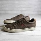 Levi Strauss & Co Casual Shoes Comfort Lace Up Men's Size 8.5 These casual sneakers are cark brown with metal eyelets and brown shoelaces. The outsoles are an off white color. They were only worn a couple of times and are in excellent used condition with very slight smudges/scuffs.