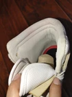 Levi Strauss all white high top sneakers. Size 9.5 men's. Pre-owned. Red brand tag on both shoes and big brand patch on tongue. Original laces and shoes show signs of wear. Some light red tint on inside/outside of one shoe. Attention: Vintage/thrifted items can have loose threads, faded colors, discoloration, pilling, and/or mild odors. Major defects will be listed. Some specialty fabrics, NWT items, or bulkier items may not be washed. All questions related to color, size, or condition prior to purchase.