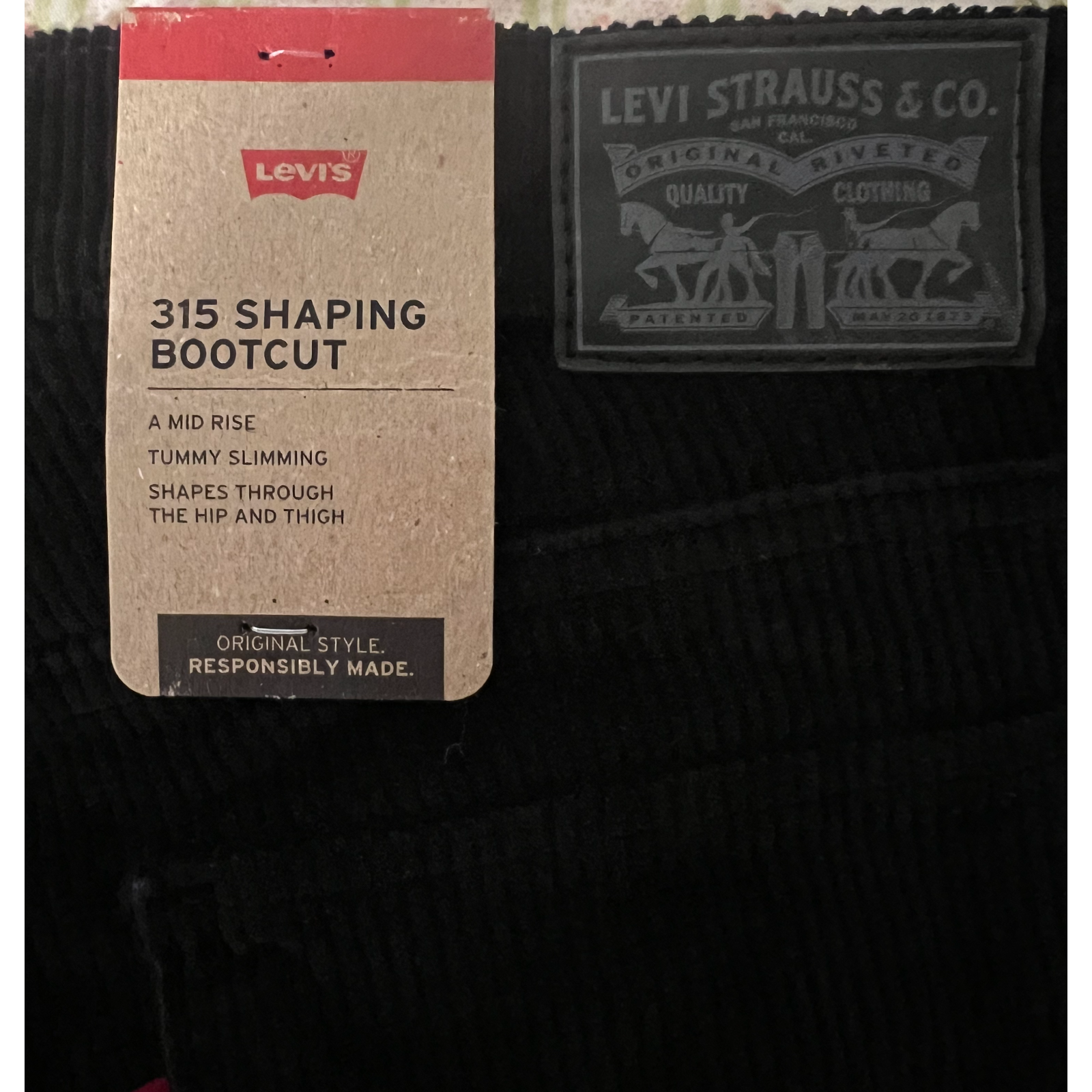 NEW WITH TAGS $69.50 Retail 27" waist 30" inseam 9" rise Levi's 315 women's pants ** black corduroy material ** shapes through the hip & thigh ** zip, button and logo ** 5-pocket design ** mid-rise and regular fit ** machine washable ** comfortable and breathable * all items stored in a smoke-free & pet free home