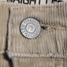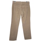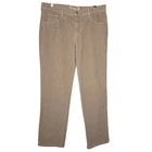 Levi's 505 Straight Leg Women's Tan Brown Corduroy Jeans Pants in Size 14R. These jeans feature a 5-pocket design with a zip and button closure, 10" mid-rise fit, and a relaxed straight leg style. Made of cotton with lycra spandex for stretch, they have shaping features and a medium fabric wash. The pants are in a solid tan color, suitable for all seasons and are part of the Levi's 505 product line. The waist is 32" and inseam 31". They are preloved in excellent like new condition.