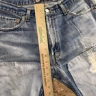 Thrashed with double knee patches. Various areas are perfectly distressed. See pics for all measurements