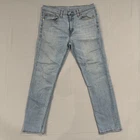 The Levi's 511 Jeans are a men's size 34x32 in a slim straight fit. Made from a denim fabric blend with a medium wash, they feature whiskering and fading details for a worn-in look. These jeans have a mid-rise and a 5-pocket design with belt loops. The Levi's 511 model is designed to be slimming and stylish, perfect for a casual yet put-together outfit. Made in Cambodia as part of the Levi's 500 Series, these jeans embody a classic American style with a touch of urban flair.