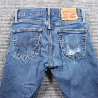 Classic 511 slim in a medium blue wash with natural whiskering. Light overall wear; small rip on back pocket (photo’d). Clean and ready to wear. Brand: Levi’s Model/Style: 511 Slim (PC9 04511-1042) Size on tag: W28 L32 Fit: Slim leg, mid rise, zip fly, 5-pocket Color/Wash: Medium blue Condition: Good preowned; small tear on back pocket, normal wash/wear. See photos. Measurements (laying flat, inches): Waist (x2): 14.25" Leg opening: 6.75" Inseam: 32" Notes: Measurements are the best indicator of fit; allow slight variance. Color may vary due to lighting/screens.